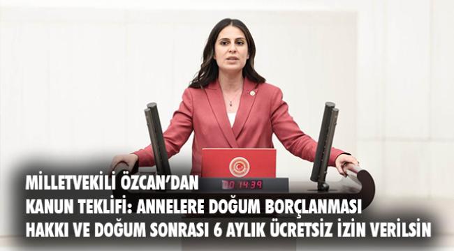 Muğla Milletvekili Avukat Gizem Özcan, doğum öncesi sigorta girişi olup olmadığına bakılmaksızın bütün kadın çalışanlara doğum borçlanması hakkını verecek ve doğum sonrası verilen 2 aylık iznin de 6 aya çıkarılmasını sağlayacak kanun teklifini TBMM’ye sundu.