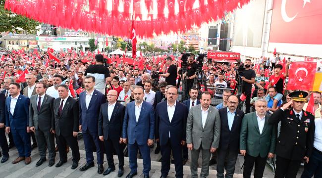 15 Temmuz FETÖ darbe girişiminin 6’ıncı yıl dönümünde Bursalılar yine meydanları doldurdu. 15 Temmuz Demokrasi Meydanı’nda düzenlenen törende konuşan Bursa Büyükşehir Belediye Başkanı Alinur Aktaş, “Darbe girişimine karşı halkımızın verdiği tepki, şanlı tarihimize yeni kahramanlıklar ekledi. Dünyaya örnek olacak bir destan yazıldı” dedi.