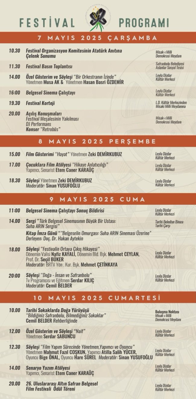Türkiye’nin belgesel sinema alanındaki en prestijli organizasyonlarından biri olan 26. Uluslararası Altın Safran Belgesel Film Festivali, Safranbolu’da coşkulu bir açılış töreniyle başladı. Kültür ve Turizm Bakanlığı Sinema Genel Müdürlüğü’nün destekleriyle, Safranbolu Belediyesi öncülüğünde düzenlenen festivalin açılışında sanat, kültür ve siyaset dünyasından birçok önemli isim yer aldı.