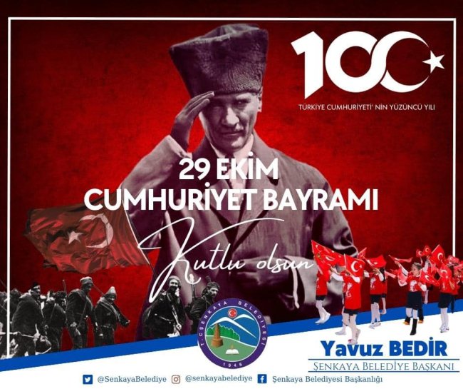 Başkan Bedir mesajında,'' Dünyanın en pahalı ve en kıymetli toprakları olan aziz vatanımız üzerinde, bu büyük milletin şan ve şeref destanlarıyla dolu tarihimizden aldığımız azim, cesaret ve gururla cumhuriyetimizin 100’üncü yılını birlikte kutlamanın gururunu yüreklerimizde hissediyoruz. Başta Gazi Mustafa Kemal ATATÜRK başta olmak üzere, bu devleti ve güzel vatanı bizlere miras bırakan şehitlerimizi ve ebediyete irtihal eden gazilerimizi rahmet ve şükranla yâd ediyor, hayatta olan gazilerimize minnetlerimi sunuyorum.''