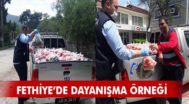 Fethiye Belediyesi, yardımda bulunmak isteyen vatandaşlar aracılığıyla tedarik edilen 9 ton sebze ve meyveyi ihtiyaç sahibi vatandaşlara dağıttı.