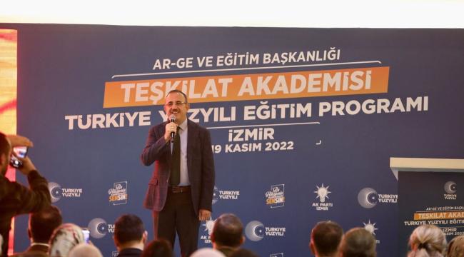AK Parti Genel Merkez AR-GE ve Eğitim Başkanlığı’nın düzenlediği Teşkilat Akademisi ‘Türkiye Yüzyılı’ konulu eğitim programı, AK Parti İzmir İl Başkanlığı’nda yapıldı. 'Bu Hikayenin Kahramanı Sensin' ve 'Türkiye Yüzyılı' mottosuyla gerçekleştirilen; ana kademe, kadın kolları, gençlik kolları, il ve ilçe yönetimlerinin yanı sıra tüm teşkilatları kapsayan eğitim programına yoğun bir katılım oldu. Genel Merkez AR-GE ve Eğitim Başkan Yardımcısı Muhammet Doğan’ın da katıldığı programda; AK Parti Samsun Milletvekili Nazım Maviş ‘Seçim 2023’, Gazeteci – Yazar Murat Çiçek ‘Sıkça Sorulan Sorular’, Gazeteci – Yazar Ersin Çelik ‘Siyasal İletişim ve Yeni Medya’, AK Parti Genel Başkan Yardımcısı ve İzmir Milletvekili Hamza Dağ ‘Türkiye Yüzyılı’ konularında eğitim verdi.