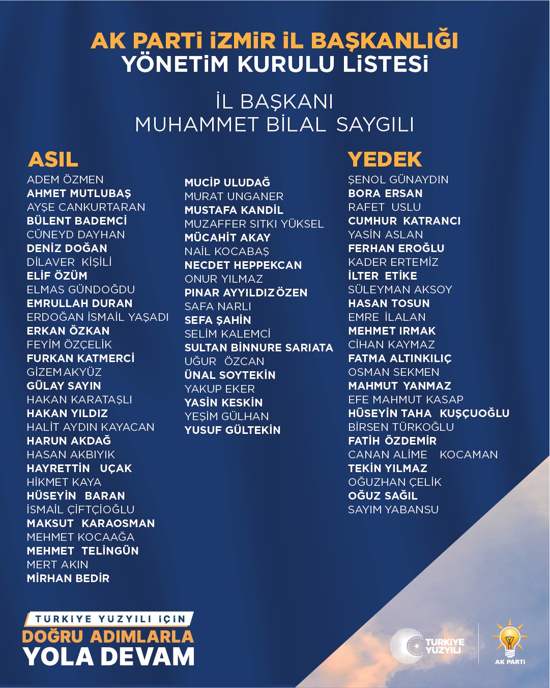 AK Parti İzmir İl Yönetim Kurulu Üyeleri şu isimlerden oluştu