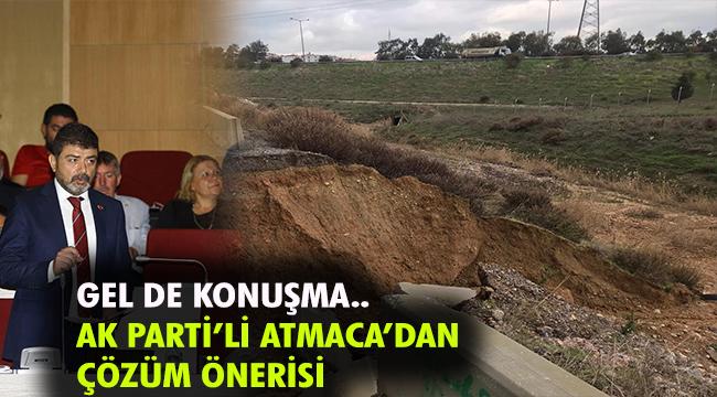 Birleşik sistem sebebiyle her yoğun yağış ertesi yağmur suyu ile birlikte pis sular sokaklara yayıldığını ve halk sağlığını tehdit ettiğini ifade eden AK Partili Atmaca, ‘’Bir an önce gerek Gaziemir, gerekse İzmir genelinde bir çalışma yapılarak kanalizasyon sisteminden ayrı yağmur suyu kanal sistemi yapılmalıdır. Gaziemir Fuar Alanının otopark ve saha betonlaması sebebiyle yağmur sularının toprak tarafından emilimi mümkün olmamaktadır. Saha betonlarından süzülerek dere yatağına gelen yağmur suyu, dere yatağının kapasitesinin üzerinde bir debi oluşturmaktadır. Dere yatağının bu yükü taşıyamaması sebebiyle sel ve taşkınlar oluşturmaktadır. Burada asıl önemli konu, İzmir Büyükşehir Belediyesi’nin Fuar alanı yer seçimi hatalı olmasıdır. Çevreci bir yaklaşımla tasarlanmayan fuar alanı, çok fazla saha betonu kullanılması sebebiyle ekolojik dengenin bozulmasına sebep olmuştur. Fuar alanı saha betonlarından süzülen yağmur suları belli rezevr alanlarında toplanarak, farklı bir akış güzergahına yönlendirilmelidir.’’ dedi.