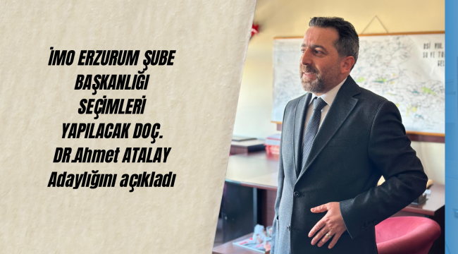 İnşaat Mühendisi Doç.Dr.Ahmet Atalay İnşaat Mühendisleri Odası Erzurum Şube Başkanlığına aday olduğunu açıkladı Atalay'ın açıklamaları şöyle ;"Değerli Basın Mensupları ve Kıymetli Üyelerimiz;
