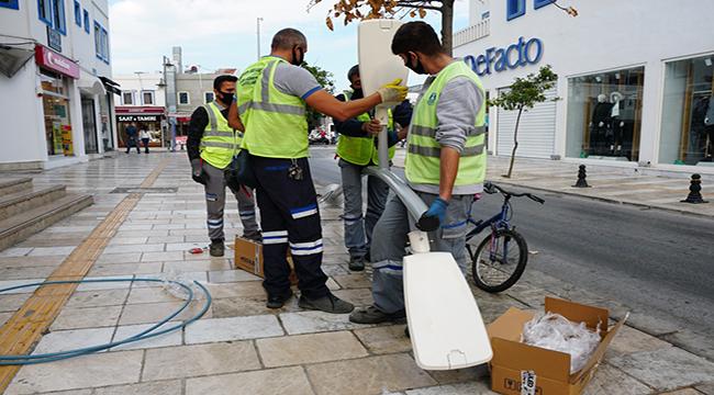Bodrum sokak ve caddelerinde aydınlatma direklerinde bakım, onarım ve yenileme çalışmaları devam ediyor.