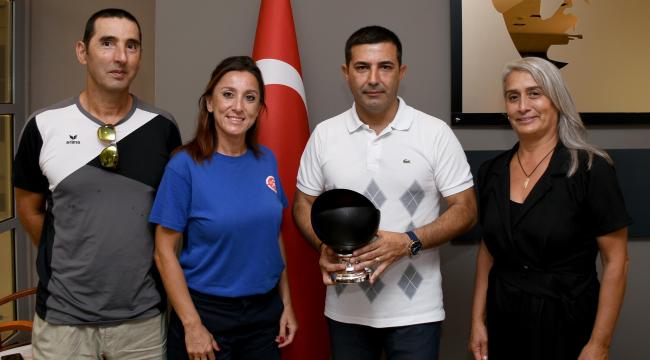 Trafik kazasında yaşamını yitiren milli triatlet Ata Yahşi anısına Kuşadası Sevgi Plajı’nda düzenlenen Bölgesel Triatlon Ligi 2. Bölge 2. Etap yarışında çeşitli dereceler elde eden Kuşadası Belediyespor’un genç triatletleri Başkan Ömer Günel’i makamında ziyaret etti. Sporcuları tebrik eden Başkan Ömer Günel, “Başarılarınızın devamını diliyorum. Kuşadası Belediyesi olarak size destek olmayı her zaman sürdüreceğiz” dedi.