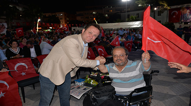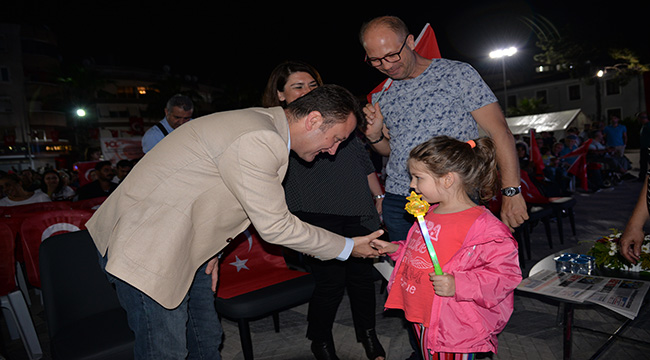 Etkinlik sırasında Galatasaray’ın şampiyon olmasıyla beraber sokağa dökülen yüzlerce Menemenli’yi selamlayan Başkan Aksoy Etkinliğin açılış konuşmasını şu sözlerle başlattı, “Bugün 19 Mayıs 1919 Atatürk’ün Samsun’a çıkışının 100. Yılı kutlanırken aynı zamanda Galatasaraylı arkadaşlarım çifte bayram yapıyor. Tüm Galatasaray’lı arkadaşlarımı kutluyorum” şeklinde konuştu. Taraftarlardan gelen ‘Mustafa Kemal’in Askerleriyiz’ sloganına Başkan Aksoy’da katıldı ve ‘Hepimiz Mustafa Kemal’in askerleri ve yoldaşlarıyız”dedi.