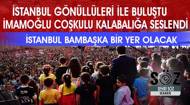 Ekrem İmamoğlu İBB Başkanlığı süresince farklı bir belediyecilik anlayışı yürüterek herkesi kucaklayacaklarını söyledi. Yeni nesil belediyecilik anlayışı için şehirdeki herkesin desteğine ihtiyaç duyduğunu kaydeden İmamoğlu konuşmasını şöyle bitirdi: “Her partiye oy vermiş kardeşlerim var. Ne mutlu bana ki hepsinin oyunu aldım. Oyunu alsam ne olur, almasam ne olur? Diğerlerinin de kalbini kazandım. Sadece bir seçim çalışması değil, sonra da devam edecek demiştim. Yeni nesil belediyecilik anlamında en çok halka, gönüllülere ihtiyaç duyacağım. İstanbul'un çoğunluğu burada. Doğruya evet, yanlışa hayır diyeceğiz. Eğitimde, çevrede, sokak canlılarında, kültürde, sanatta, trafikte, toplumun her konusunda gönüllü insanlar bu şehre hizmet edecek, kente sahip çıkmanın keyfine varacak. Talimatı sizden alıp, hesabı da size vereceğiz. İstanbul gönüllüsü takımdır, şikayet etmez, katkı sunar, her zaman güler yüzlüdür. İnsanları eşit görür ve herkese eşit davranır. Asla ayrıştırmaz, birleştirmez. Farklılıklarımızın zenginlik olduğunun bilincindedir. Başkalarının inancına saygı duyar, tartışmaz. Dedikodudan uzak durur. Çevresindeki herkesi gönüllü yapmak için harekete geçirir. Bu tarife var mısınız? Sizlerle beraber bu şehre yanlış yapmayacağız. Denetleyici, gözleyici olacaksınız. Sistemli bir koordinasyon merkezine çevireceğiz. Katılımcı demokrasiyle dünyaya örnek olacağız. Tek isteğim şu. En demokrat belediye başkanı olmak. Bizim gönlümüzde herkes bir. Bu şehirde mutluluğun ve özgürlüğün tadını çıkarırken, 2030'da 2050'de adil bir İstanbul yaratmak hedefindeyiz. Hep beraber bunu başaracağız. En çok sizlere güveniyorum.