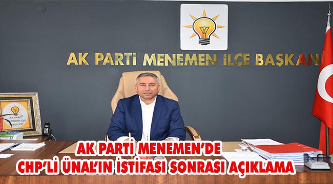 AK Parti Menemen İlçe Başkanı Ahmet Can Çelik, Menemen Belediye Meclisi CHP Grup Sözcüsü Hasan Ünal’ın istifası ile ilgili basın açıklaması yaptı.