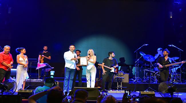 Coşkulu konser sonrası Başkan Akpolat, Gülşen adına Tema Vakfı’na bağışlanan fidan plaketini sevilen sanatçı Gülşen’e takdim etti.