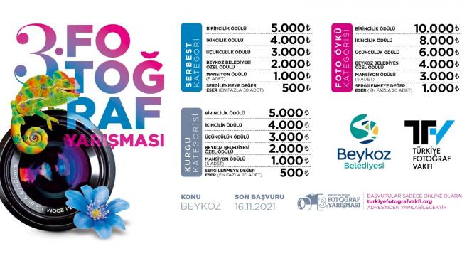 Beykoz Belediyesi 3. Fotoğraf Yarışması’na başvurular yalnızca online olarak www.turkiyefotografvakfi.org adresinden yapılacak ve 16 Kasım 2021 tarihine kadar devam edecek.