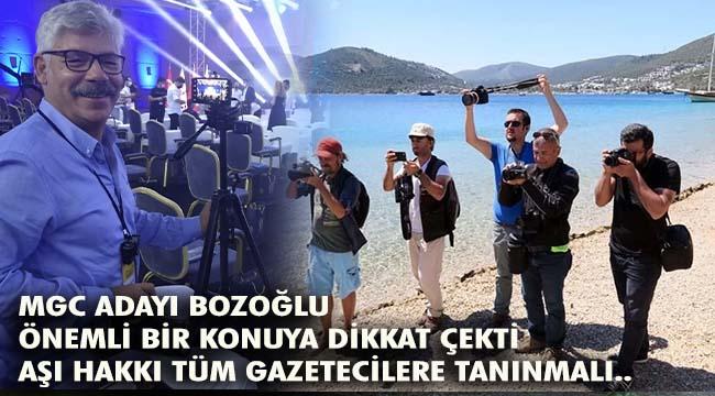 Sağlık Bakanlığı, geçtiğimiz Nisan ayında Covid-19 aşılama programı kapsamındaki öncelikli gruplara, Cumhurbaşkanlığı İletişim Başkanlığınca verilen basın kartı taşıyan gazetecileri de ekledi. Sadece basın kartı taşıyan gazetecilerin aşılanmasının yanlış bir karar olduğu belirten Muğla Gazeteciler Cemiyeti Başkan Adayı Fatih Bozoğlu, bu konuda eşitlik ilkesine bağlı kalınmasını ve tüm gazetecilere aşı yapılmasını istediklerini söyledi.