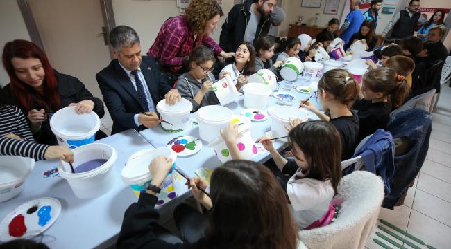 Nilüfer Belediyesi’nin 4 Nisan Dünya Sokak Hayvanları Günü’nde düzenlediği etkinliğe katılan çocuklar, mama ve su kaplarına rengârenk resimler çizdi.