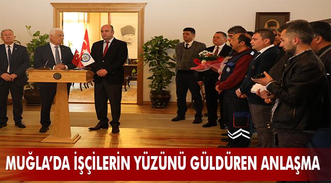 Muğla Büyükşehir Belediyesi ve DİSK Genel İş Sendikası arasında gerçekleştirilen toplu iş sözleşmesi anlaşmasının imza töreni yapıldı. İmzalanan sözleşmeye göre işçilere 2020 yılı için yüzde 14, sonraki 2 yıl için yüzde 10 zam ve yüzde 2’ye kadar enflasyon farkı verildi.