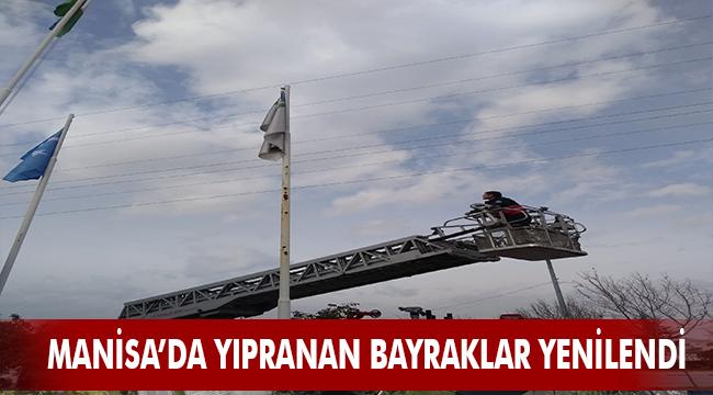 Manisa Büyükşehir Belediyesi Zabıta Dairesi Başkanlığı ekipleri, İtfaiye Dairesi Başkanlığı işbirliğiyle hava koşulları nedeniyle yıpranan bayrakları yeniledi. Kuva-yı Milliye Anıtı önündeki Türk Bayrağı ile Adnan Menderes Mahallesi ve YSE Kavşağı’nda bulunan Türki Cumhuriyetler bayrakları, ekiplerin yaptığı çalışmayla yenileriyle değiştirildi. Çalışmalar, vatandaşlardan da tam not aldı.