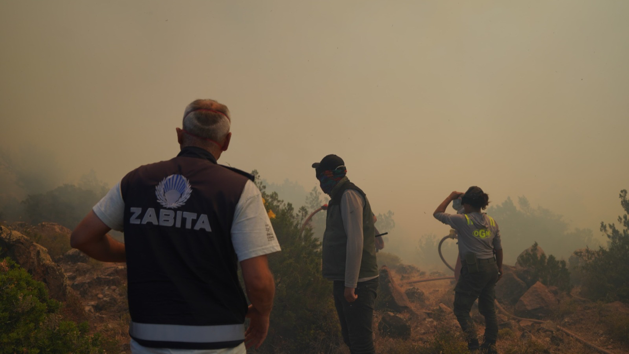 “Yangında 24 saati geride bıraktık. Yangın dün Ildır Mahallemizden başladı ardından hızlı bir şekilde şiddetli rüzgarın etkisi ile hızlıca Germiyan Köyü’müze ulaştı. Sonrasında Germiyan’da yerleşim bölgelerine 1-1 buçuk km kala köyün tamamını tahliye ettik. Yurttaşlarımızı hem belediye tesislerimize hem de konaklama yapabilmeleri, geceyi geçirebilmeleri için bölgemizdeki otellerin de katkıları ile yerleşimlerini sağladık. İzmir Büyükşehir Belediyesi İtfaiye ekipleri ve destek hizmetleri, Çeşme Belediyesi Yangınla Mücadele Ekiplerimiz, Sosyal Yardım İşleri’nin de katkılarıyla, Orman Genel Müdürlüğü ekiplerinin gündüz havadan akşam ise karadan müdahaleleri sonucunda sabaha karşı yangın kısmi olarak kontrol altına alındı. Kısmi olarak soğutma çalışmaları bazı bölgelerde devam ediyor, bazı bölgelerde ise yangın rüzgarın şiddetini de artırmasıyla aktif olarak devam ediyor. Canımız yanıyor. Sadece insanların tahliyesi değil hayvanların da can güvenliğini sağlamak bizlerin önceliği. Dolayısıyla burada hiçbir canlının burnu kanamadan bu süreci tamamlamayı arzu ediyoruz. Ağaçlarımız, yeşil alanlarımız kül oldu. Bu büyük bir acı. Büyük bir felaket. Evlere sirayet etmemesi için büyük bir dayanışma gösterdik.”