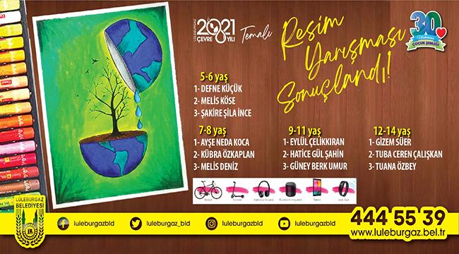 Lüleburgaz Belediyesi’nin 2021 Çevre Yılı temalı 4 ayrı yaş kategorisinde düzenlediği 30. Uluslararası Çocuk Şenliği Resim Yarışması sonuçlandı. Seçici kurul tarafından 5-6, 7-8, 9-11, 12-14 yaş gruplarında ilk 3’e girerek yarışmayı kazananlar belirlendi. Dereceye giren eserler Lüleburgaz Belediyesi Hizmet Binası Fuaye Alanı’nda sergilenecek.
