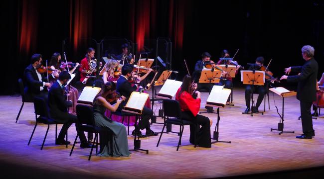 CRR Konser Salonu YouTube kanalından 27 Ocak’ta yayınlanan konserde, şef Cem Mansur yönetimindeki CRR Gençlik Orkestrası, bestecinin yaşam öyküsünden bildiğimiz ve müziğinde de sürekli kendini gösteren şakacı ve muzip kimliğinin örneklerinden, erken ve geç dönem eserlerinden "Galimathias Musicum" ve "Müzikal Şaka"yı seslendirdi.