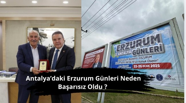 Haber/ yorum: Sercan Çetin- Erzurum’un tanıtımına katkı sağlaması beklenen Antalya Erzurum Günleri (22-26 Ocak) etkinliği, organizasyon eksiklikleri ve etkisiz tanıtım çalışmaları nedeniyle beklenen ilgiyi göremedi. Antalya Erzurumlular Derneği’nin düzenlediği etkinlik, plansız ve dar kapsamlı bir organizasyon olarak kaldı.