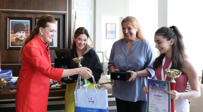 Dokuz Eylül Üniversitesi (DEÜ) Devlet Konservatuvarı, elde ettiği başarılarla yerel ve uluslararası alandaki tanınırlığını artırıyor. DEÜ Devlet Konservatuvarı Müzik Bölümü’nden Dr. Öğr. Üyesi Çiler Talu ile flüt ve korno eğitimi alan öğrencileri, son bir yıl içinde ulusal ve küresel ölçekteki yarışmalarda elde ettikleri dereceleri paylaşmak üzere DEÜ Rektörü Prof. Dr. Nükhet Hotar’ı ziyaret ettiler. DEÜ Devlet Konservatuvarı’nın dünden bugüne sanat camiasına sayısız isim kazandırdığını vurgulayan DEÜ Rektörü Prof. Dr. Nükhet Hotar, “Yerel ve küresel ölçekteki müzik yarışmalarında önemli dereceler elde ederek bunu bir kez daha ortaya koyan öğrencilerimizin başarılarıyla gurur duyuyoruz” dedi.