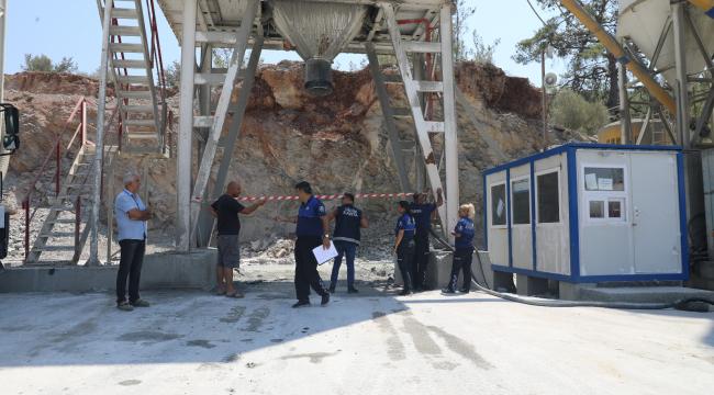 Didim'de bulunan ve 'İşyeri Açma ve Çalışma Ruhsatı' bulunmayan 4 beton santrali, Didim Belediyesi tarafından mühürlendi.