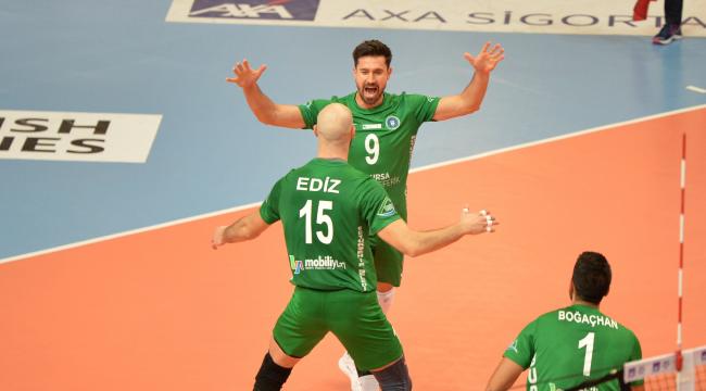 Bursa Büyükşehir Belediyespor Kulübü Erkek Voleybol Takımı, AXA Sigorta Kupa Voley birinci tur rövanş maçında İnegöl Belediyespor’u 25-19, 25-21, 25-19 setlerle önce 3-0 ardından altın sette 15-10 geçerek çeyrek finale yükseldi.