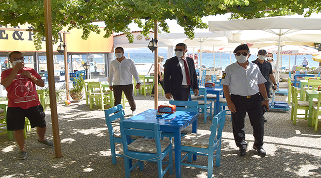 Foça Belediyesi Zabıta Müdürlüğü ekipleri ve Jandarma Asayiş timlerinin katıldığı denetlemelerde, maske kullanımı ve sosyal mesafe konusunda işletmecilere ve vatandaşlara uyarılar yapıldı.