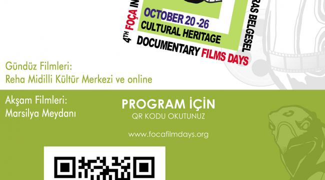 Foça Belediyesi’nin destekleriyle bu yıl 4’üncü kez düzenlenen film günleri kapsamında, Reha Midilli Kültür Merkezinde ve Marsilya Meydanında Türkiye’den ve farklı birçok ülkeden belgesel filmler ücretsiz gösterilecek. Film yönetmenleriyle söyleşiler, atölye çalışmaları ve arkeologlar eşliğinde Foça’nın tarihi alanlarında yürüyüşler gerçekleştirilecek.