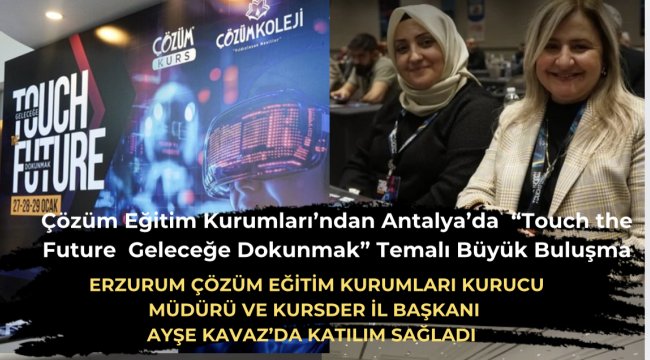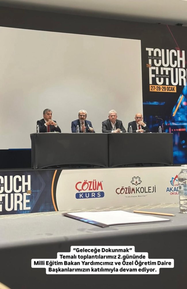 Türkiye’nin eğitimdeki güçlü aktörlerinden Çözüm Eğitim Kurumları, kurucularını “Touch the Future – Geleceğe Dokunmak” temasıyla Antalya’da bir araya getirdi.Çözüm Eğitim Kurumları Yönetim Kurulu Başkanı Osman Öztürk,Çözüm Eğitim Kurumları Genel Müdürü Ahmet Akça ve Kurslar Genel Müdürü Sait Konyalıgil "Geleceğe Dokunmak” temasıyla düzenledikleri toplantı daveti ile Milli Eğitim Bakanlığı Özel Eğitim Kurumları Genel Müdür Yardımcısı Turan Şahin, Okullar Daire Başkanı Şemsettin Ünal ve Eğitime yön veren önemli isimleri bir araya getirdi. Düzenlenen önemli buluşma, 27-28-29 Ocak 2025 tarihlerinde Antalya Mirage Park Resort Hotel’de gerçekleştirildi.