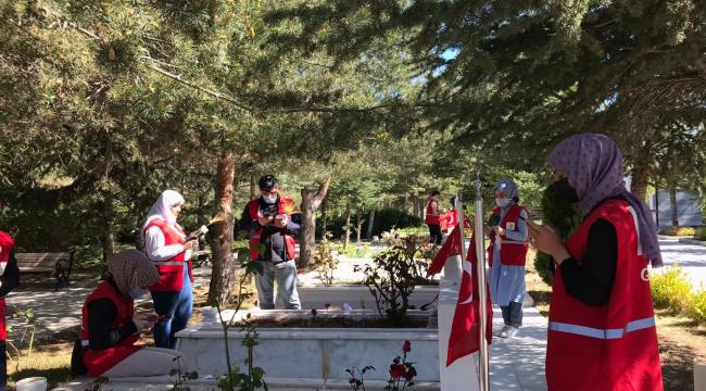 Genç Kızılay gönüllüleri, Ramazan ayı boyunca sahada bir yandan ihtiyaç sahiplerinin hizmetine koşarken, diğer yandan mezarlıkları da ziyaret ederek bakım ihtiyacı olan mezarlara ilgi gösteriyor. Koronavirüsle mücadele sürecinde alınan tedbirler nedeniyle bayram öncesi ve bayramda mezarlık ziyaretleri sokağa çıkma kısıtlaması nedeniyle yapılamadı. Türkiye’nin 81 ilinde Genç Kızılay gönüllüleri sorumluluk üstlenerek, arefe günü ve bayram boyunca mezarlık ziyaretleri gerçekleştirdi. Mezarlıkların üzerindeki kuru otları Genç Kızılay gönüllüleri, mezar taşlarında silinen harfleri boyayarak okunur hale getirdi.