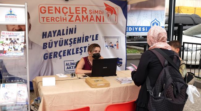 Bursa Büyükşehir Belediyesi'nin, üniversite adaylarının geleceğini doğru tercihlerle şekillendirebilmeleri amacıyla kentin farklı noktalarında uzman rehberlerin nezaretinde oluşturduğu Üniversite Tercih Rehberlik Noktaları gençlerden yoğun ilgi görüyor.