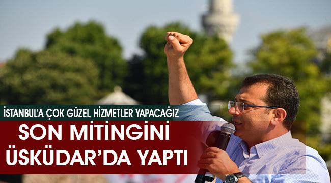 Seçilmiş İstanbul Büyükşehir Belediye (İBB) Başkanı Ekrem İmamoğlu, 23 Haziran seçim kampanyasının son mitingini Üsküdar'da yaptı. İstanbul Boğazı'na nazır Üsküdar Meydanı'nda toplanan binlerce vatandaş, İmamoğlu'nun gelişini, şarkılar-türküler eşliğinde eğlenerek bekledi. İmamoğlu'nun içinde bulunduğu seçim otobüsü, vatandaşların yoğun ilgisi altında zorlukla miting alanına girdi. İmamoğlu, eşi Dilek İmamoğlu ile birlikte konuşma yapacağı platforma çıktı. İmamoğlu çifti, mitinge katılan coşkulu vatandaşları birlikte selamladı. ''Hak, hukuk, adalet'', ''Ekrem Başkan'' ve ''Her şey çok güzel olacak'' sloganları eşliğinde konuşmasına başlayan İmamoğlu, ''Üsküdar'ın damadı olarak geldim buraya'' dedi.