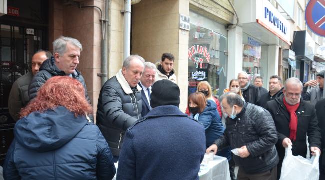 Memleket Partisi Genel Başkanı Muharrem İnce, 18 Mart Şehitleri Anma Günü ve Çanakkale Zaferi'nin 107. yıl dönümü dolayısıyla vatandaşlara üzüm hoşafı ve ekmek dağıttı.