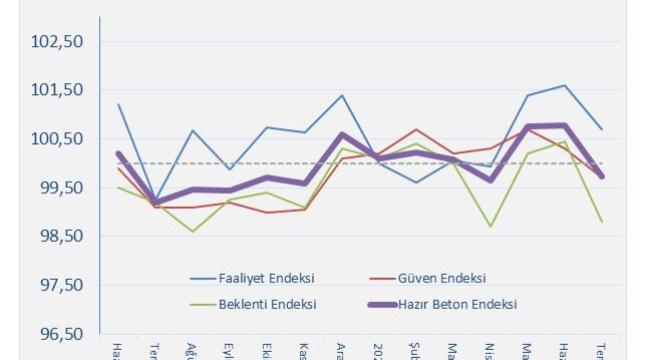 Hazır Beton Endeksi 2023 Temmuz Ayı Raporu’na göre, Faaliyet Endeksi haziranda son 21 ayın en yüksek değerini gördükten sonra temmuzda aşağı yönlü hareket etse de hâlen eşik değerin ve yıl ortalamasının üzerindedir. Beklenti Endeksi mayıs ve haziran aylarındaki konumunu sürdürememiş ve eşik değerin altına gerilemiştir. Güven Endeksi de haziran ayındaki değerine kıyasla aşağı yönlü hareket sergilemiş görünmektedir. Endekslerdeki gerilemeye rağmen inşaat sektörünün son 3 aylık performansı dikkat çekicidir.