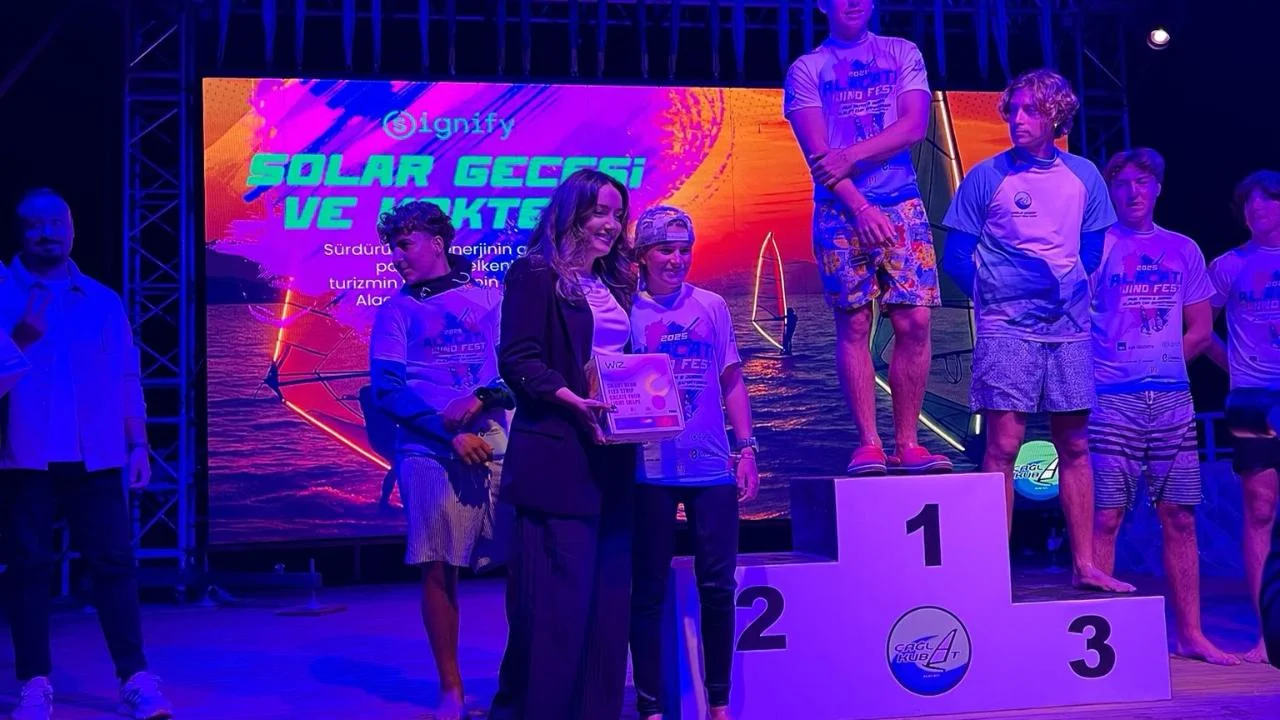 Alaçatı Koyu, ışığın ve rüzgârın dansına sahne oldu. Profesyonel windsurf sporcusu ve antrenörü Çağla Kubat tarafından organize edilen Alaçatı Wind Fest 2025 kapsamında bu akşam düzenlenen özel yarışta, güneş enerjisiyle aydınlatılmış yelkenler Alaçatı semalarını büyüleyici bir atmosfere dönüştürdü.