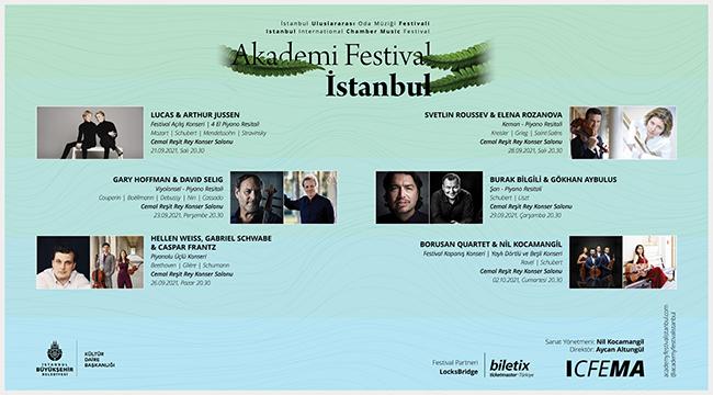 İstanbul Büyükşehir Belediyesi Kültür Daire Başkanlığı’nın katkılarıyla, Akademi Festival İstanbul bünyesinde düzenlenen I. İstanbul Uluslararası Oda Müziği Festivali 21 Eylül-2 Ekim tarihleri arasında Cemal Reşit Rey (CRR) Konser Salonu’nda gerçekleştirilecek. Dünyaca ünlü müzisyenlerin İstanbullularla buluşacağı festivalin ilk yılında ana tema, “Doğa ve İstanbul”.