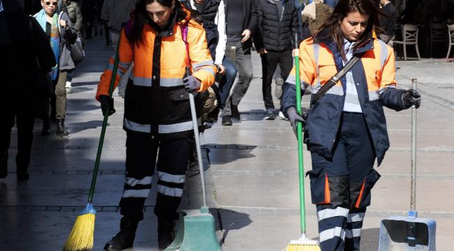 İzmir’in meydanları 216 kadın süpürgeciye emanet.