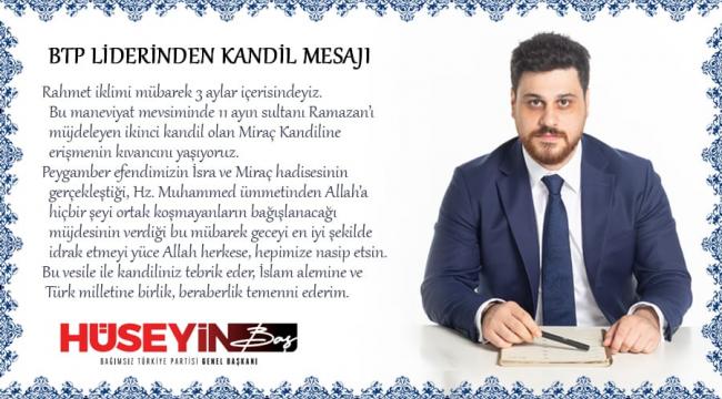 Bağımsız Türkiye Partisi (BTP) Genel Başkanı Hüseyin Miraç Kandili münasebetiyle bir mesaj yayınladı.