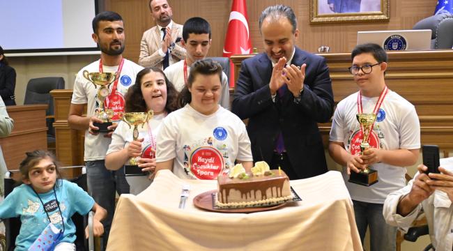 Bu maddenin görüşülmesinden hemen sonra meclis salonuna giren Büyükşehir Belediyesi Engelsiz Dart Takımı, Başkan Alinur Aktaş’a doğum günü sürprizi yaptı. 17 Mayıs doğumlu olan Başkan Aktaş’ın doğum gününde Ankara’da olacak olması yüzünden mecliste pasta kesildi. Başkan Aktaş, pastayı Celal Sönmez Engelliler Rehabilitasyon Merkezi’nde geçtiğimiz günlerde yapılan Dart Turnuvası’nda ilk üçe girerek kupa ve madalya alan sporcularla birlikte kesti. Şampiyon sporcuları başarılarından dolayı tebrik eden Başkan Aktaş, onlara çeşitli hediyeler verdi.