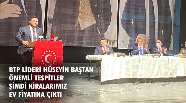 BTP Genel Başkanı Hüseyin Baş: Biz kira öder gibi ev alalım diyoruz, şimdi kiralarımız ev fiyatına çıktı. O yüzden bu ekonomik dengesizliklerin önüne geçmenin tek yolu BTP iktidarıdır ve başka da hiçbir yolu yoktur.'' Dedi.