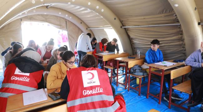 Depremin ardından Türkiye’nin dört bir yanından deprem bölgesine gelen Kızılay gönüllüleri depremzedelere yardım etmek seferber oldu. Kızılay gönüllüleri ilk günden bu yana yardım dağıtımı, yemek dağıtımı, ramazan döneminde özellikle sahur paketlerinin hazırlıkları, psikososyal destek çalışmaları ve yardımların tasnifi gibi Kızılay tüm yardım çalışmalarında görev alıyor.