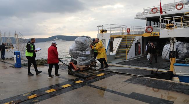 Ülkemizin Güneydoğusunda peş peşe yaşanan büyük afetler sonrası ülkede ve tüm dünyada yardım seferberliği başlarken komşu adalarda toplanan yardım malzemeleri, Bodrum üzerinden deprem bölgesine ulaştırılmaya devam ediyor.