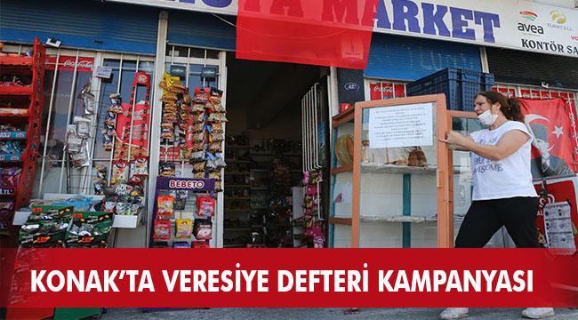 Konaktaki bakkallar da ödemeleri, “Bu dükkandan veresiye alışveriş yapan koronavirüs önlemleri sebebiyle ödeme zorluğu yaşayan hemşehrilerimizin borçları Konak Belediyesi’nin öncülüğünde başlatılan yardımlaşma kampanyasına destek olan bir hayırsever tarafından ödenmiştir” yazısıyla duyuruyor.