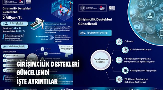 Bugüne kadar girişimcilik alanında çok önemli destekler vererek hizmet, ticaret, imalat ve bilişim alanlarda yeni işletmelerin kurulmasına, kurulduktan sonra da bu işletmelerin geliştirilmesine ve sürdürülebillirliklerine katkı sağlayan KOSGEB, Girişimcilik Destekleri’ni bugünkü şartlara göre tekrar güncelledi. Desteğin üst limitini 375 bin TL’den 2 milyon TL’ye çıkardı.