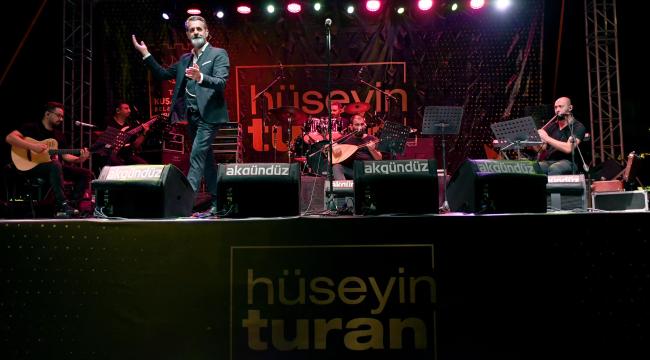 Türk Halk Müziği’nin önemli seslerinden Hüseyin Turan, Kuşadası’nda muhteşem bir konser verdi. Kuşadası Belediyesi’nin ücretsiz halk konserleri kapsamında İsmail Cem Dostluk ve Barış Meydanı’nda sahne alan sanatçı Hüseyin Turan’a Kuşadalılar yoğun ilgi gösterdi. Konserde Hüseyin Turan ve orkestrası çeşitli yörelerden seslendirdiği türkülerle seyircileri coşturdu.