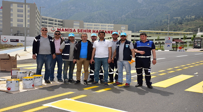 Ulaşım Dairesi Başkanlığı Trafik Hizmetleri Şube Müdürlüğü ekipleri, Manisa Şehir Hastanesi önünde yol çizgi çalışmaları gerçekleştirdi. Ekiplerin hummalı çalışmalarına Ulaşım Daire Başkanı Hüseyin Üstün ve Trafik Hizmetleri Şube Müdürü Bülent Ceylan da eşlik etti. Trafikte can ve mal güvenliğinin sağlanması amacıyla birçok projeye imza atan Manisa Büyükşehir Belediyesi Ulaşım Dairesi Başkanlığı ekipleri, Şehir Hastanesi’ni Turgutlu Caddesi’ne bağlayan güzergah boyunca yol çizgilerini belirledi. İçişleri Bakanlığı tarafından daha önce ilan edilen Yaya Öncelikli Trafik Yılı etkinlikleri kapsamında yayaların geçiş üstünlüğüne dikkat çekmek amacıyla ‘Önce Yaya’ ikonlarının montajı da yapıldı. Ulaşım Dairesi Başkanlığı Trafik Hizmetleri Şube Müdürü Bülent Ceylan çalışma hakkında bilgi verirken; kısa süre içerisinde Manisa Şehir Hastanesi’ndeki yol çizgi çalışmalarını tamamlamayı ve vatandaşların kullanımına sunmayı planladıklarını dile getirdi.