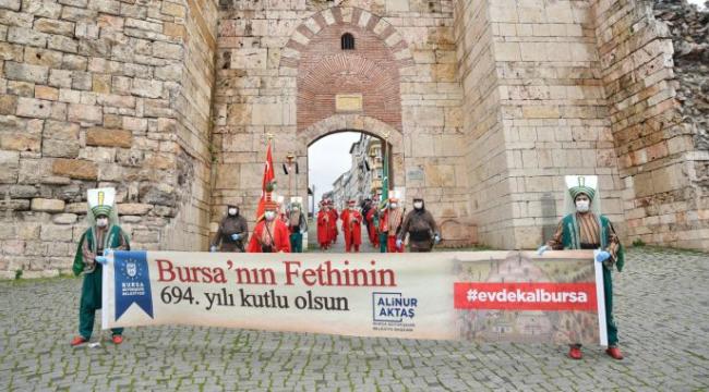 Bursa’nın fethinin 694. yıldönümü, tüm dünyayı etkisi altına alan koronavirüs (covid-19) salgını nedeniyle sade mehter geçişiyle kutlandı. Bursa Sur Kapısı’ndan (Yerkapı) start alan yürüyüş, Osmangazi Han Türbesi önünde verilen mini konser ile son buldu.