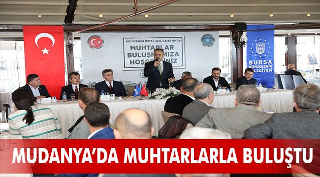 Büyükşehir Belediye Başkanı Alinur Aktaş, Mudanya’da muhtarlarla bir araya geldi. İlçenin problemlerinin masaya yatırıldığı, çözüm yollarının tartışıldığı toplantıda açıklamalarda bulunan Başkan Aktaş, ulaşım ve imar başta olmak üzere yaşanan sıkıntıların çözülmesi noktasında kararlı olduklarını söyledi.