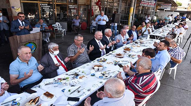 Menemen’deki esnaf ve sanatkârları buluşturan Ahi Sofrası, İlçe Müftüsü Mehmet Seven’in dua okumasıyla sona erdi.